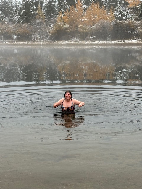 My rule is that, as long as there is not ice on the water, I have to swim. So I bundled up and walked down the road with my friend Amy as witness/photographer/rescuer.